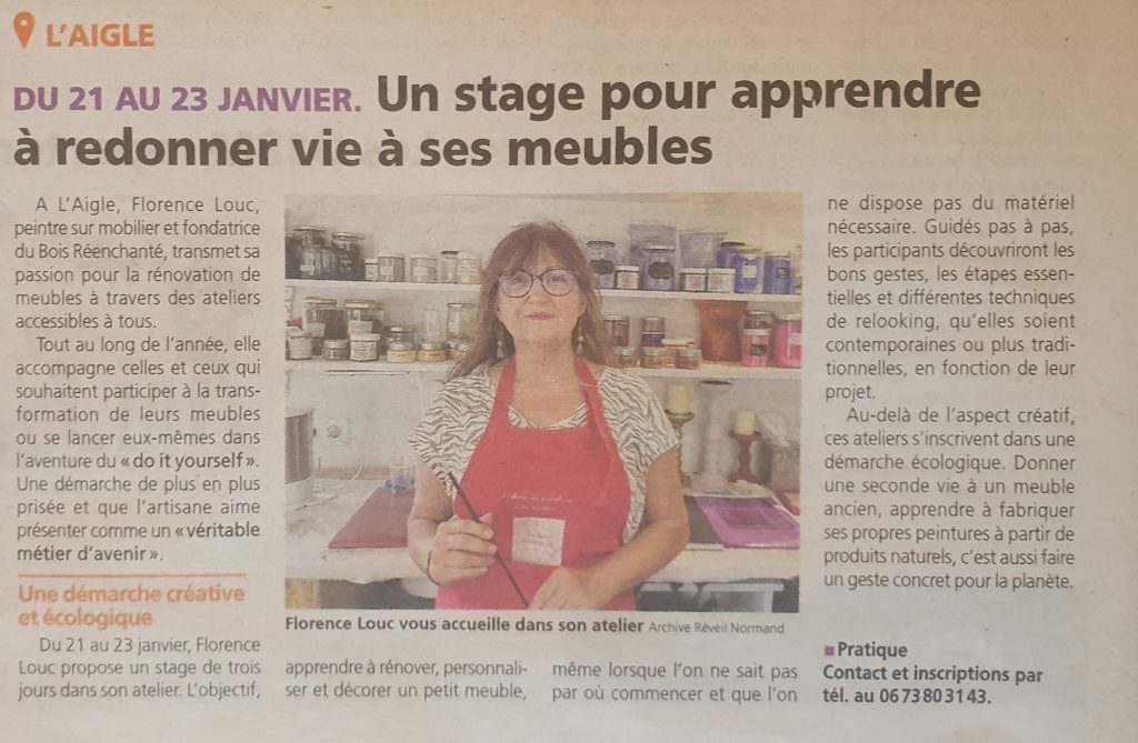 Cette semaine, Le Réveil Normand met en avant les stages à l’atelier. Il reste des places pour le stage Lacca contrafatta d’une journée, mardi 27 janvier.
